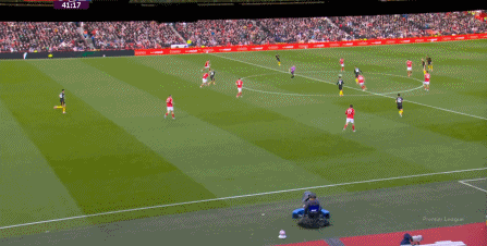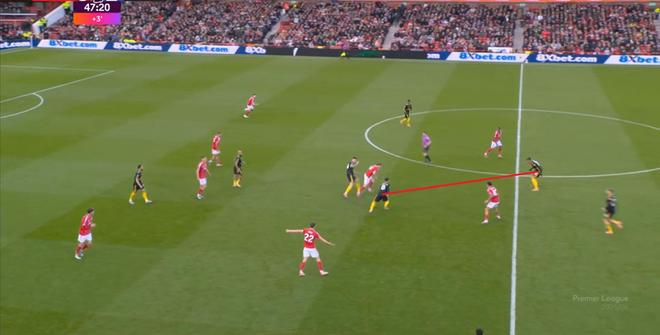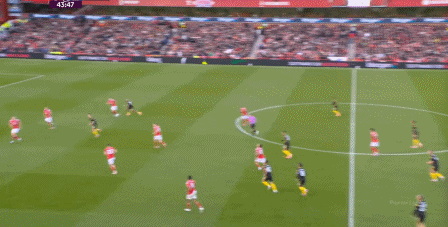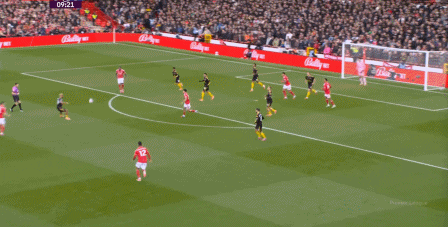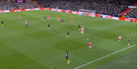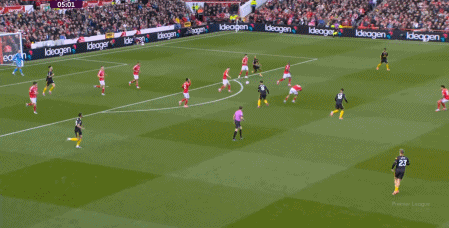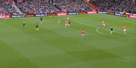 这个时候的曼联选择强攻,除了这脚通过卡塞米罗的前插,为布鲁诺拉出远射中柱的空间之外: