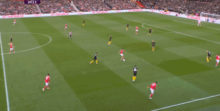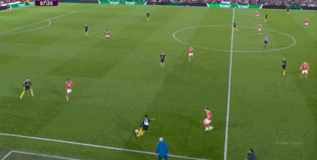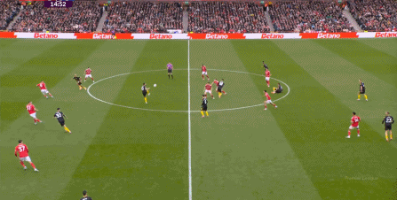 在谢什科和姆贝乌莫几乎同时失效的这种情况下,库尼亚这一侧的表现才变得尤为重要,因为他实际上在防守和拿球的情况下,担负着从这一侧帮助曼联打出进攻的关键职责。