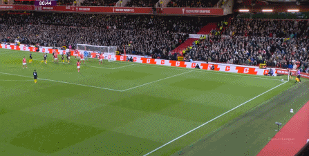 而在这次进攻制造的定位球当中,诺丁汉森林就已经开始从右侧禁区角的方向起球,而这恰恰就是曼联在下半场连续丢球的位置: